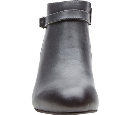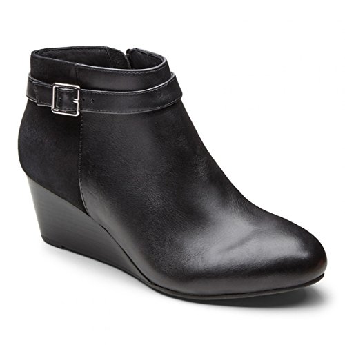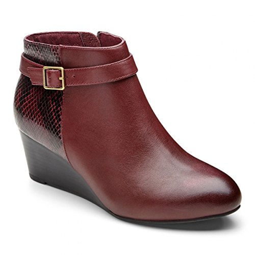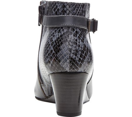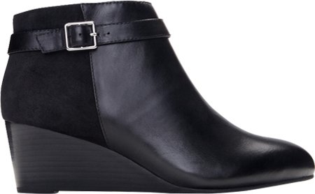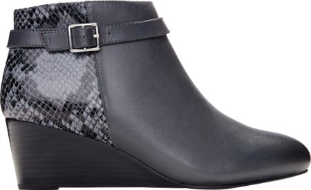 -. Feature : Inside zipper entry / Decorative buckle strap / Stacked-look wedge heel / Leather upper / Removable, microfiber-covered, EVA insert