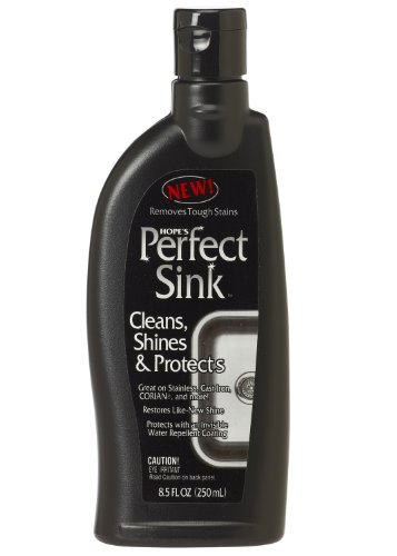 Quickly restore a like-new shine to your sink with Hope's Perfect Sink. Its easy to apply formula gently scrubs like a cleanser, yet shines like a fine polish. It quickly removes though stains, polishes to a brilliant shine and leaves an invisible barrier that repels water and makes cleaning easier. Great for stainless steel, CORIAN (solid surface), cast iron, composite, acrylic and vitreous china.Feature