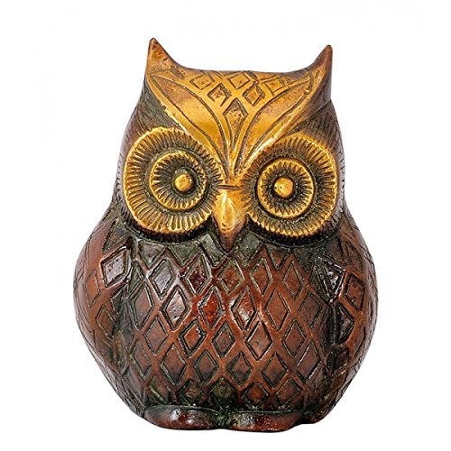 Exotic India Brass Owl Brass Statue, 3.75" x 3" x 2.56"
