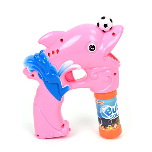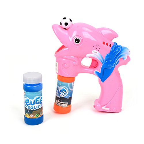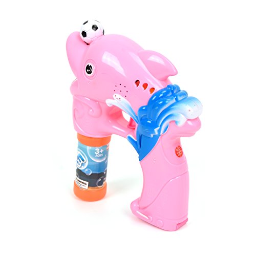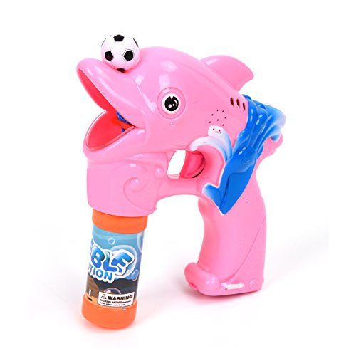 Studio : Wonder Play Publisher : Wonder Play Product Description Battery operated bubble gun with light and music. Pull the trigger to blow endless bubbles! Solid Color Dolphin style Packing size:10.62*9.25*2.4 in. Requires 3 AA Batteries.Ready, aim, and fire a barrage of bubbles! Educational toys serve a dual purpose - lets the children enjoy and helps them learn something new at the same time! Additional Remarks: Bubbles will begin to shoot in 5 seconds once you pull and hold the trigger. Bubble shooter will start making larger and less amount of bubbles when the batteries are weak. Please replace the weak batteries with new ones. Use of high-quality batteries are recommended for better performance. Hold the bubble shooter upright after use. Bubble solution may leak if the bubble solution is tilted more than 30 degrees. Adult supervision is recommended. 0