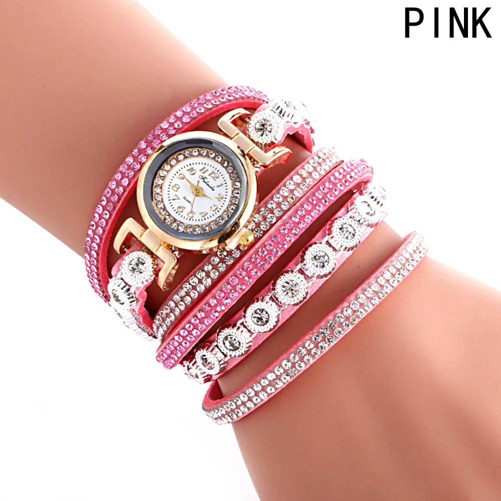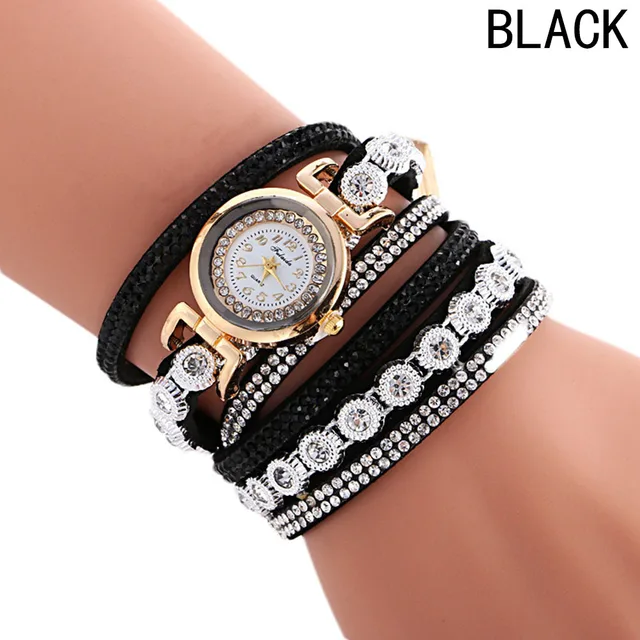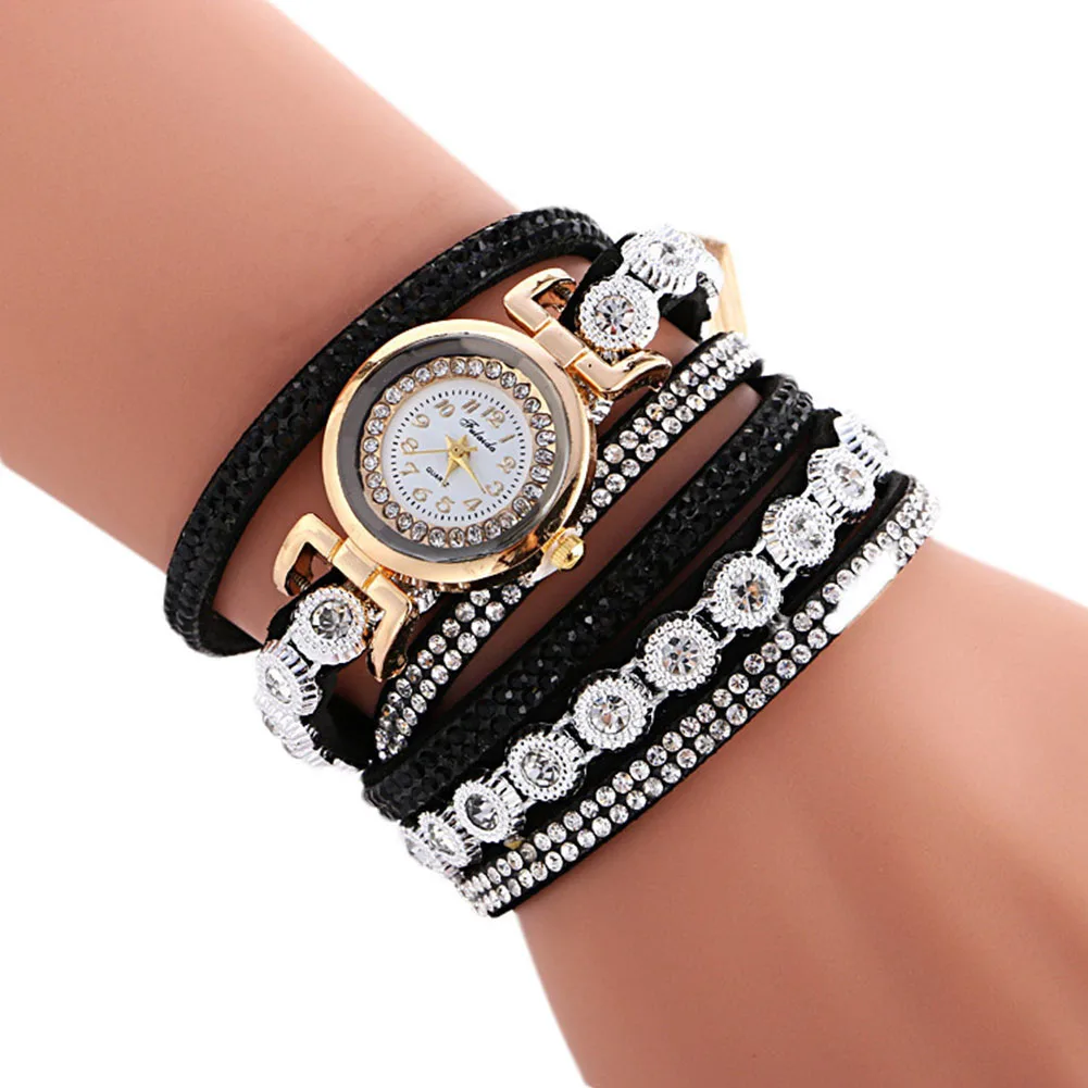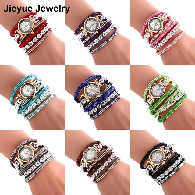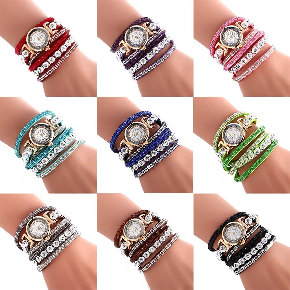 | [해외] 패션 가죽 팔찌 시계 여성 캐주얼 드레스 빈티지 라인 석 손목 시계 럭셔리 석영 시계 시계 |