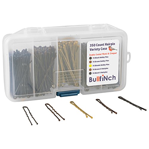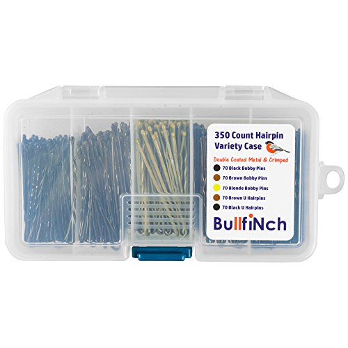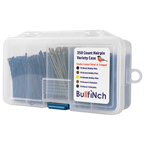 350 Count - Variety Hair Pin Case - Bobby Pin Assortment Set by BullfiNch - Compartment Organizer