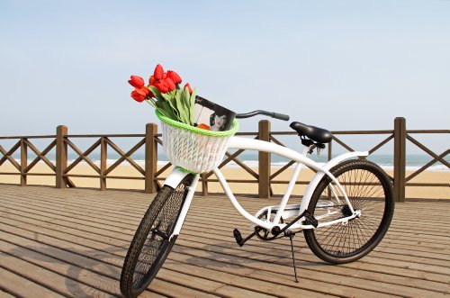 - Title : Colorbasket Adult Front Handlebar Bike Basket, White with Green Trim
