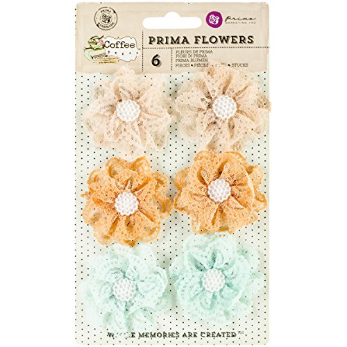 Prima Marketing Coffee Break Flowers, 2-Inch, Fabric Chai Tea, 6-Pack