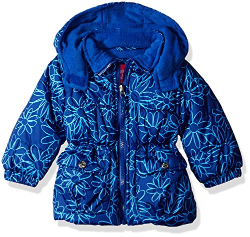 Pink Platinum Baby Girls' Infant Tonal Floral Print Puffer Jacket, Purple Flower, 24 Months