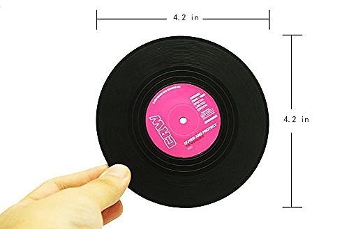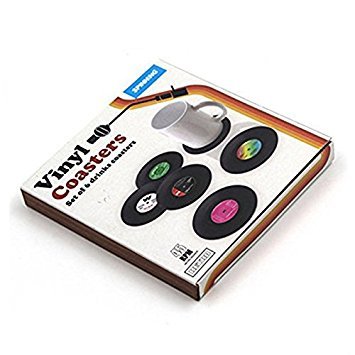 - FITS ANY CUPS: Set of 6 different coloured silicone & plastic drinks coasters in a cool retro presentation box, Great gift for any music lover. Coaster dimensions: 4.1" (10.5 cm) x 0.1" (2.4 mm).