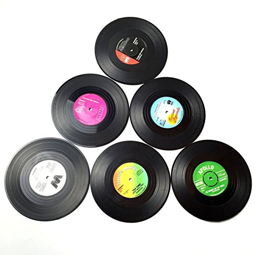 - MUSIC THEME: Great gift for any music lover .Adorn your coffee table with these stylish retro vinyl record coasters, each one features a different record label design.