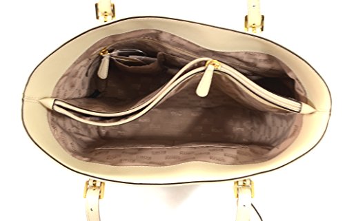 -. Brand : -. Color : Vanilla -. Department : womens -. Feature : Made of Saffiano leather / A tech-friendly handbag specially designed with a padded interior to fit most laptops and tablets / Exterior features 1 front pocket with snap closure / Interior features middle zip compartment, 2 slip pockets in front compartment, 2 slip pockets and 1 zip pocket in back compartment / Approximate deminsions: 13.5" W x 11" H x 5.5" D; Double handles with 8.25" drop -. ProductGroup : Shoes -. ProductTypeName : HANDBAG -. Title : Jet Set Item Large Saffiano Leather Pocket Multifunciton Tote Bag Purse Handbag