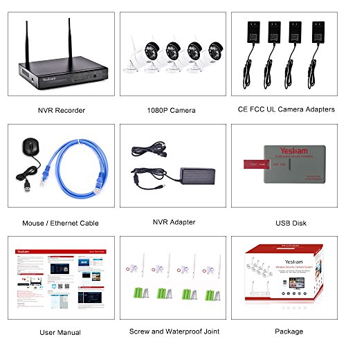 -. Title : Yeskam Home Security Camera System 1080P Wireless 4 Channel Full HD Surveillance Cameras Auto Pair 2.0 Megapixel DVR Recorder Outdoor CCTV KIT No Hard Drive