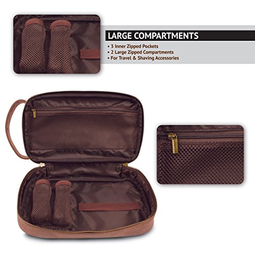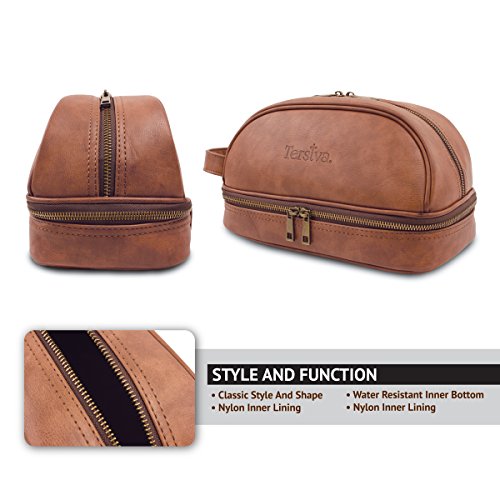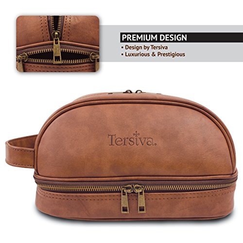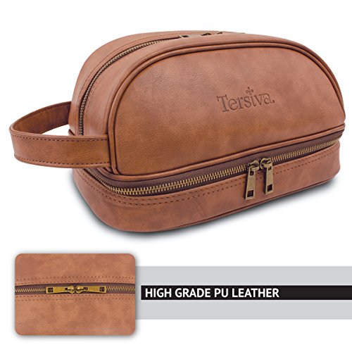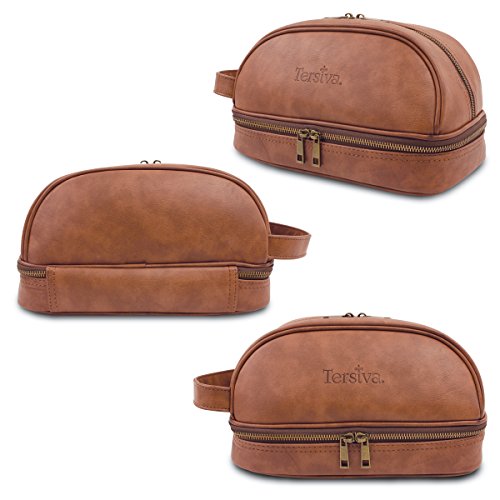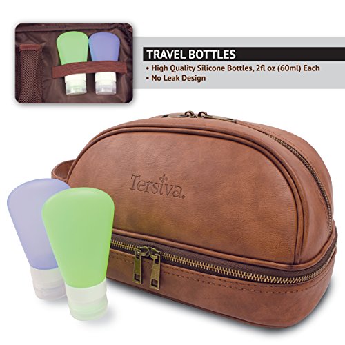 Tersiva Leather Toiletry Bag For Men Women Unisex (Dopp Kit) with free Travel Bottles