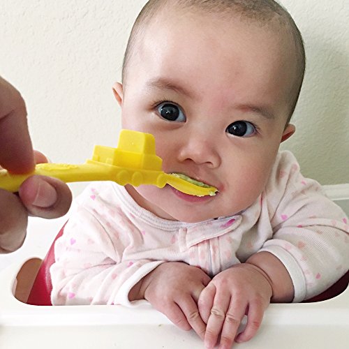 oogaa Home Baby Feeding Spoon Gentle on Gums, Fun Shape Toddlers Love Truck, Yellow