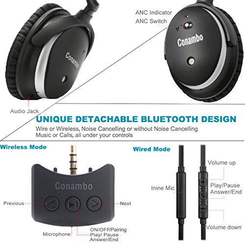 UNIQUE DETACHABLE BLUETOOTH DESIGN: Plug and Play, wire or wireless, noise cancelling or without noise cancelling, Music or Calls, all under your controls! Up to 8 hours battery time in wireless mode and up to 40 hours in ANC only mode.