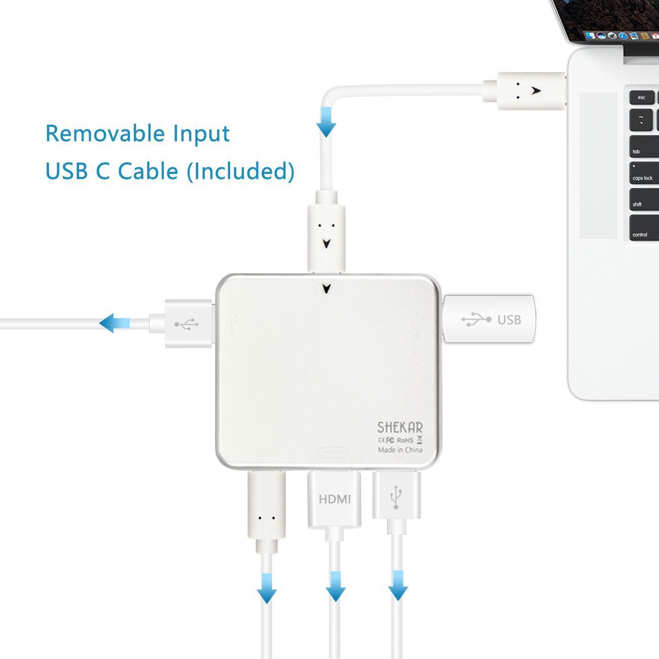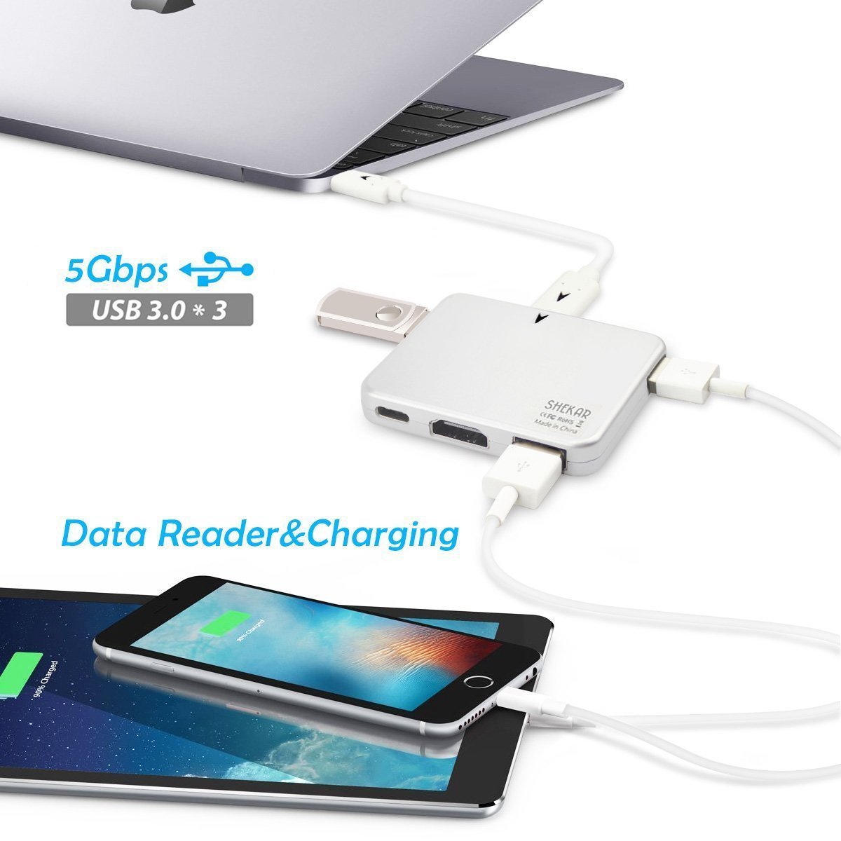 One USB-C port can be used as three USB 3.0 ports, HDMI output, USB-C input.