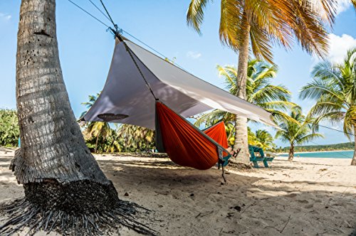FITS YOUR CAMP: 12 x 9 foot hexagon shape provides a HUGE rain-proof footprint for up to a 12ft hammock. Fits the ENO Doublenest PERFECTLY! Room for 4 people as an ultralight tarp tent!