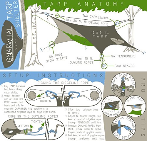 Tarp Shelter by Gnarwhal Gear - 12 x 9 Feet - Waterproof, Lightweight Rain-Fly Kit Perfect for Camping or Backpacking - Essential Hammock Tarp-Tent and Sun Shade Canopy
