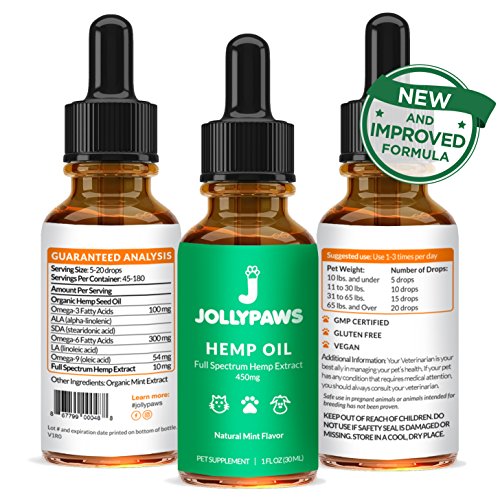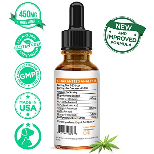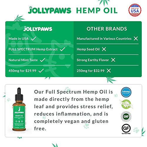 ★ 450 MG (MORE FOR YOUR DOLLAR): Jolly Paws main concern is providing the best experience for your pet. Our Full Spectrum Hemp Oil comes with more quality oil that has been third party tested, making sure you are not wasting your money. We care about your wallet. More money for frisbees and catnip!