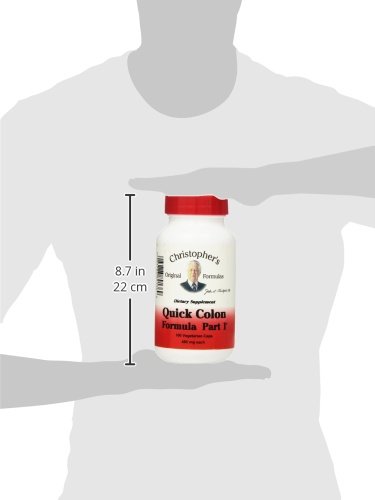 -. Binding : Health and Beauty -. Brand : Dr. Christopher's Formula -. EAN : 0084783891369 -. Feature : Synergistic blend of herbs for the colon / Helps clear bowels of toxic waste / Encourages normal bowel function and supports intestinal system -. IsAdultProduct : 0 -. IsAutographed : 0 -. IsMemorabilia : 0 -. Label : Dr Christopher's Formula -. LegalDisclaimer : * These statements have not been evaluated by the Food and Drug Administration. This product is not intended to diagnose, treat, cure or prevent any disease. ** Always refer to the manufacturer's label on the product for description, recommended dose and precautions. -. Manufacturer : Dr Christopher's Formula -. Model : 89136 -. MPN : 0757757 -. NumberOfItems : 1 -. PackageQuantity : 1 -. PartNumber : 0757757 -. ProductGroup : Health and Beauty -. ProductTypeName : HEALTH_PERSONAL_CARE -. PublicationDate : 2014-09-01 -. Publisher : Dr Christopher's Formula -. ReleaseDate : 2015-06-22 -. Size : 100 Capsules -. Studio : Dr Christopher's Formula -. Title : Dr. Christopher's - Quick Colon Part 1 - 100 Vegetarian Capsules (485 mg each) -. UPC : 084783891369