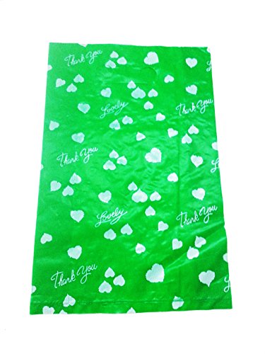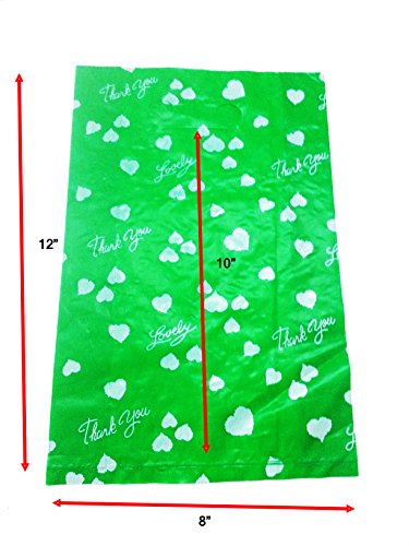 Small 50 Pcs. Lin NaDa Treat Goody Plastic Bag 8"Wx12 "Hx3" Deep With Die Cut Handle (8x12-G16- Green)