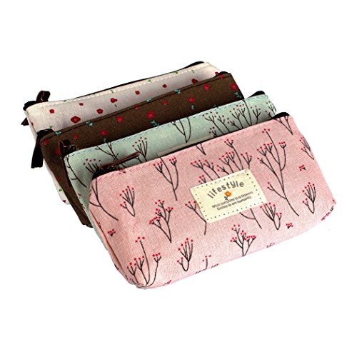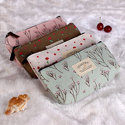 Small fresh rural wind floral canvas multifunctional pen bag of cosmetic bag(4 Pieces)