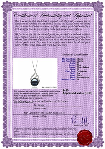 Included FREE with your cultured pearls pendant is an Appraisal Certificate prepared by a Pearl Expert describing in detail your pendant size, color and body shape. A color picture of your pendant is shown on each certificate to ensure carefree insurance claims should those ever arise. It is a wonderful keepsake that shows you truly care.