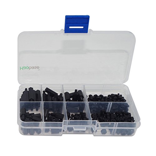 Haobase M3 Nylon Hex Spacers Screw Nut Stand-off Plastic Accessories Assortment with Plastic Box Black 180pcs