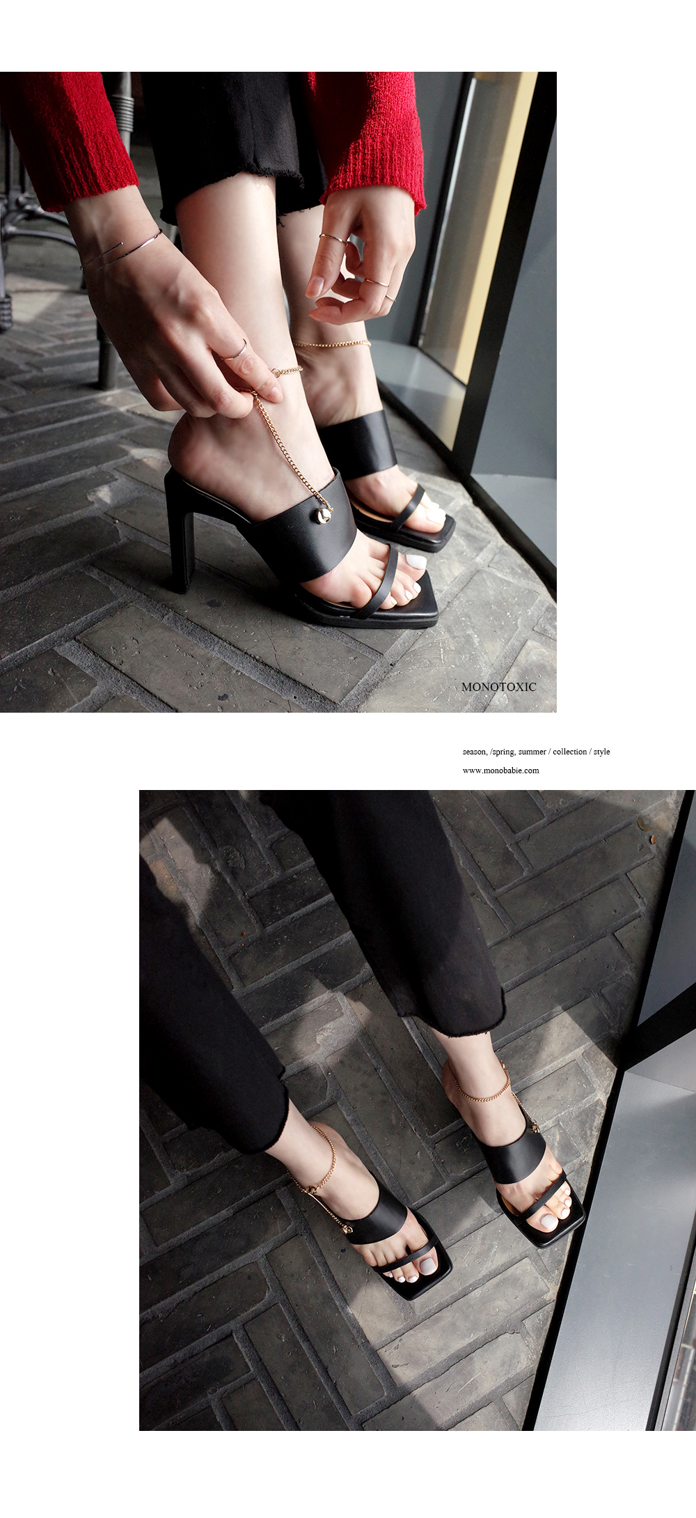 특히 탈부착 가능한 골드체인은 발목에 발찌처럼 연출되는 디자인이기에 한여름에 슈즈하나로 악세사리까지 갖춰지는 지니어스한 제품입니다.