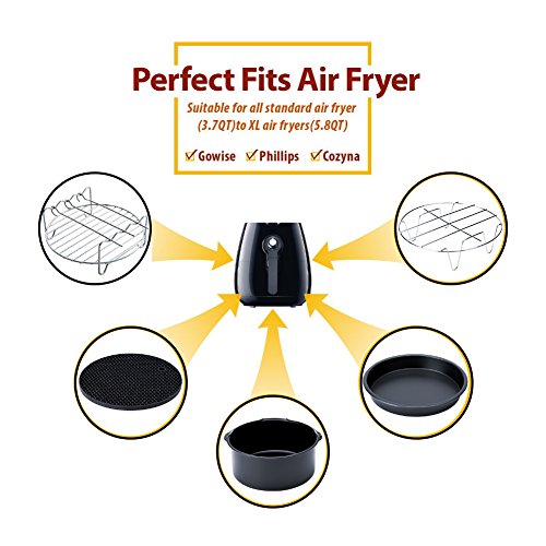 - ★ 100% COMPATIBLE : This universal Air Fryer Accessory set fits all standard Air Fryers (3.7qt) to XL Air Fryers (5.8qt). Don,t worry ,It is the perfect size, such as Cozyna, Philips, Gowise and other Power Air Fryers.