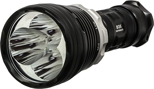 Studio : XTAR Publisher : XTAR Binding : Sports Product Description XTAR Cree xm-l2 u2 d35 is a very powerful and rock-solid built diving flashlight with super brightness of 2800lm, beam throw of 560 meters, and waterproof of underwater 100 meters. And with the magnetic ring switch, d35 is very easy to operate. What is more it has the preset mode function could offer whatever luminance that ranged from 15lm to 2800lm as you like. The wide beam throw, high brightness, sops and present function make it the best choice as energy-efficient outdoor flashlight for diving, underwater photography, search rescue, firefighting etc. Features: 1.Modes base (rotate the switch to "select", and the light will first ramp from 2800lm to 15lm then sops and strobe, at any point you rotate the switch back to "preset" the current mode/output level will be memorized). 2. Fitted with 3 high efficient Cree xm-l2 u2. 3. Max output of 2800lm, 78500cd, and 560m’s max beam throw. 4. Use 3*18650/18700 button-top battery provide enough running time. 5. The magnetic dimmer ring switch to operate 6 modes: high- medium- low- strobe- sops- preset. 6. Digitally regulated output for maintaining constant brightness. 7. Memory function: brightness automatically saved once selected. 8. Premium type iii hard-anodized finish ensures abrasive erosion. 9. Made of durable aircraft-grade aluminum. 0