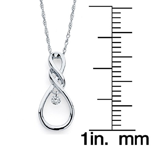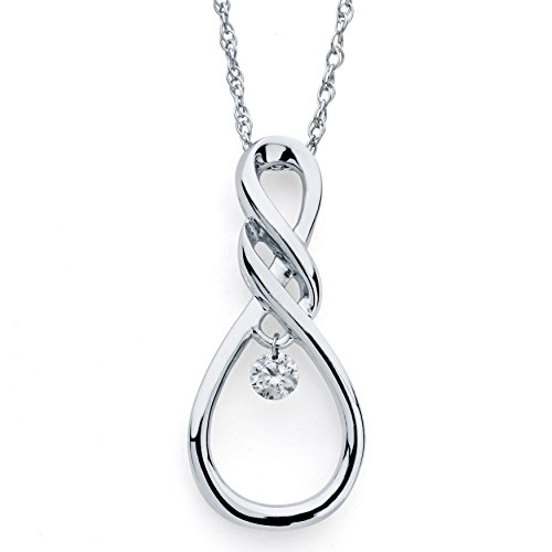 This beautiful Brilliance in Motion 925 Sterling Silver Diamond Pendant features a .08 Ctw. diamond in a unique setting that allows the diamond to shine with every movement a woman makes. The necklace includes an 18" Rope chain with a lobster claw clasp. This is the perfect gift for yourself or someone you love!