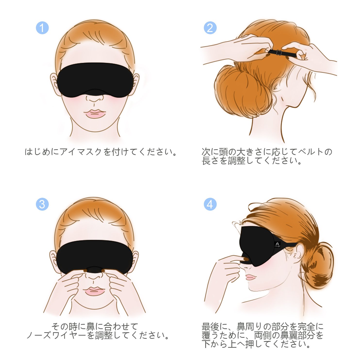 後ろのヘッドバンドは調整可能のタイプですので、顔と頭の大きさに関わらず、細かいデザインで、目元と耳に圧迫することはありません。ヘアへの影響も最小化に抑えます。日常の睡眠時はもちろん、夜行バスや飛行機などの移動時にも活用できます。ポーチも付いていますので、使わない時はコンパクトに収納できます。プレゼントとしても喜ばれるアイテムです。