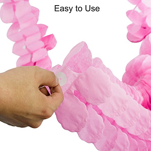 Wisehands Reusable Garlands Tissue (Four-Leaf Clover Garland) Hanging Streamers for Birthday, Wedding, Baby Shower, Nursery or Christmas, 9.8 feet Each, Pink, Pack of 10