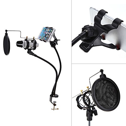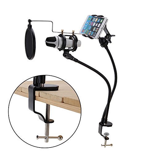 -. Title : VANPOWER Phone Microphone Stand Mount Condenser Microphone Stand with Angle Adjustment 360° Swivel Holder,Including Mic Stand,Phone Mount and Pop Filter for iPhone Android