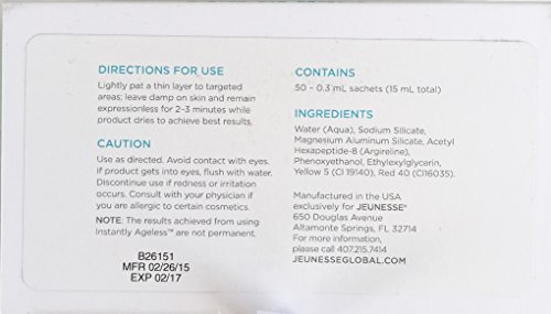 Instantly AgelessTM is a powerful anti-wrinkle microcream that works quickly and effectively to diminish the visible signs of aging. The revolutionary ingredient is argireline: a peptide that works like botox-without the needles. Instantly AgelessTM revives the skin and minimizes the appearance of fine lines and pores for a flawless finish. SIZE: 50 - 0.3 mL sachets (15 mL total)Feature