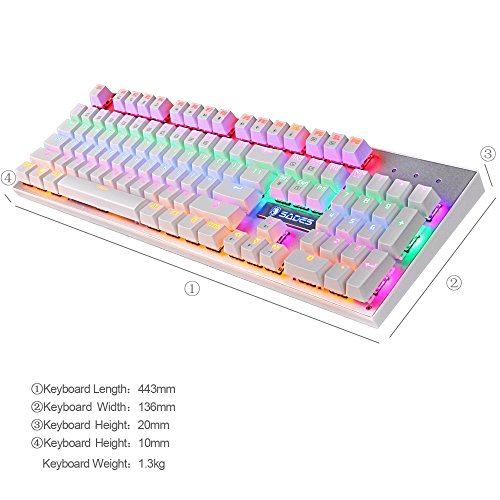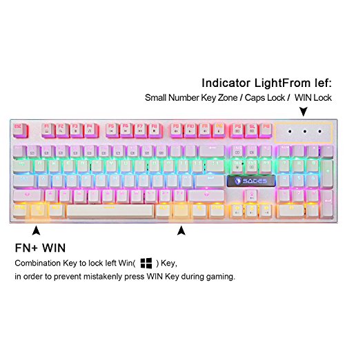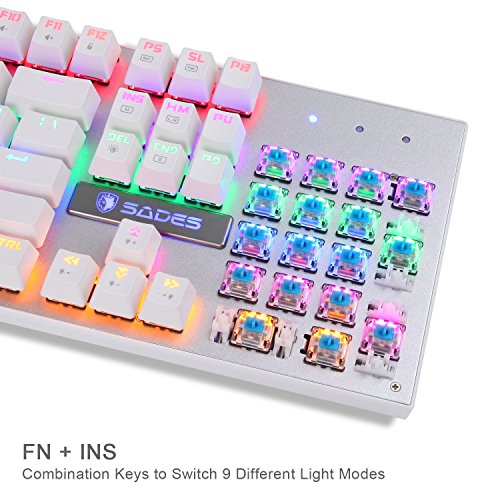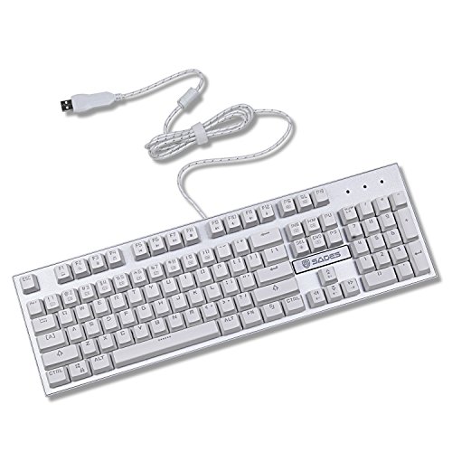 -. Title : SADES K10 Fashion Blue LED Backlit Wired Mechanical Gaming Keyboard with Blue Switches (White)