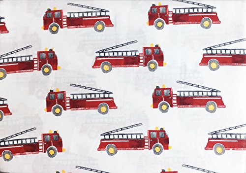 -. Feature : Rugged Bear 4 Piece Full Size Sheet Set / Red Fire Trucks with Gray Wheels and Ladders on a White Background / Includes 1 Flat Sheet, 1 Fitted Sheet and 2 Pillowcases / 100% Cotton, Machine Washable