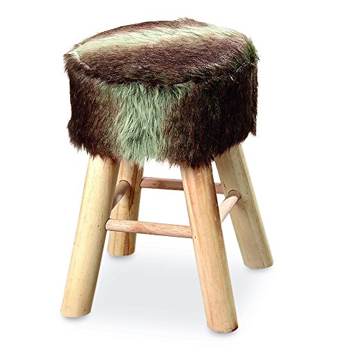 - Crafted of pale pine wood and topped with super soft faux pony fur, this stool measures 11 ¾ in diameter and is 16 ½ inches high.