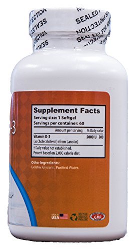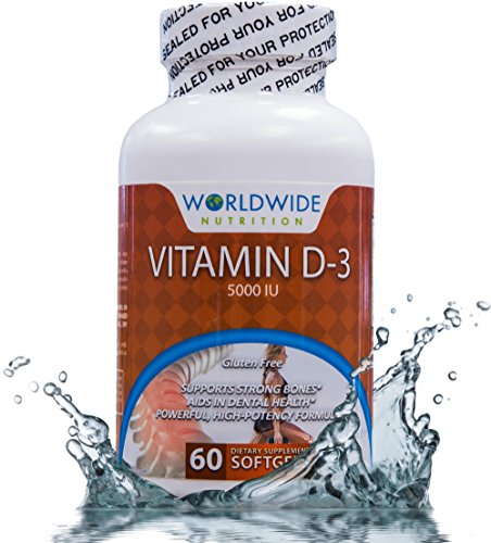 -. Feature : VITAMIN D-3 is the most superior form of Vitamin D. The D-3 compound ensures your body has access to calcium which increases bone, teeth, and cartilage health while simultaneously aiding muscle growth and functioning. / D-3 VS. D-2: Vitamin D-3 is the ULTIMATE NUTRIENT FOR HUMAN HEALTH. D-3 is far better absorbed and utilized in the body compared to Vitamin D-2 and helps maintain Vitamin D levels in your body in the long run, which D-2 does not do. / VITAMIN D DEFICIENCIES lead to increased risk of bone fractures, greater risk of developing osteoporosis, and leads to dangerously low levels of phosphate in the blood stream. / HIGH QUALITY SOFTGELS: Worldwide Nutrition's advanced softgel capsules allow for an easy-to-swallow method and promotes rapid release for optimal absorption and assimilation into the body. / FORMULATED BY INDUSTRY EXPERTS: Worldwide Nutrition's advanced capsules are made with minimal ingredients and the daily recommended dosage of 5000 IU-as stated by the Vitamin D Council- to maximize Vitamin D-3's natural benefits.