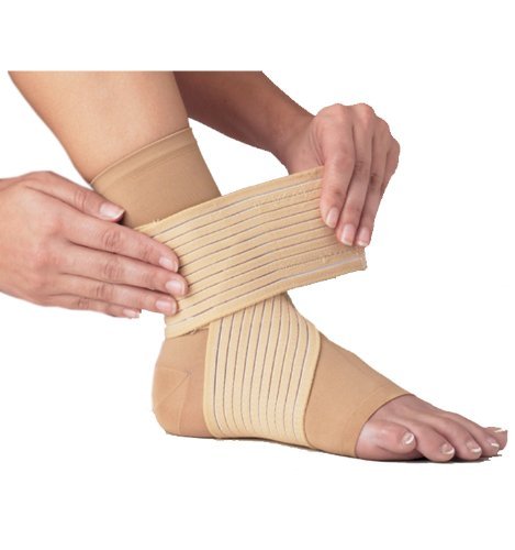 -. Feature : Low profile, non-bulky for mild ankle and arch support / Easy to apply closed heel sleeve / Figure 8 strapping for improved ankle support / Provides compression for ankle sprains and soft tissue injuries / Fits comfortably in athletic or street shoes