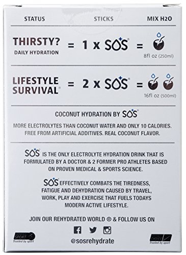 SOS Coconut hydration drink mix has more electrolytes and 4 x less sugar than coconut water, yet still tastes amazing. SOS effectively combats the tiredness fatigue and dehydration caused by travel, work, play and exercise that fuels todays active lifestyles.