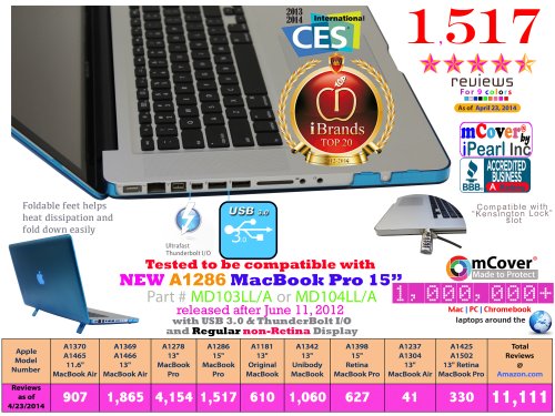 | iPearl mCover Hard Shell Case with FREE keyboard cover for 15" Model A1286 Aluminum Unibody Mac... |