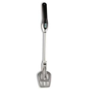 - Feature : Large spatula for easy scooping of any single portion food; unique claw with piercing thermometer probe tip / 22-inch long handle keeps fingers away from the heat; easy to read lcd displays food temperature; set the temperature for desired food doneness / Easy-to-use, just slide food onto spatula, pull trigger so claw pivots and thermometer probe tip pierces food; wait a few seconds; the lcd will display food temperature / If food temperature is above set temperature, the unit will give an audible alert; Repeat quickly on multiple pieces of meat
