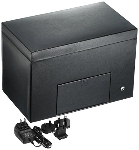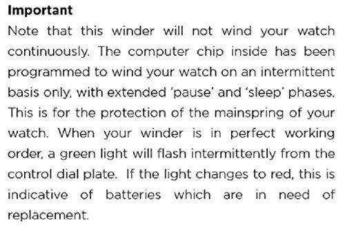 Studio : Wolf Designs Inc Publisher : Wolf Designs Inc Binding : Kitchen Product Description The WOLF Heritage Double Watch Winder with Storage is wonderful for the watch connoisseur whose passion for timepieces demands only the finest accessories. This sleek case with locking cushions features two recessed winders set within a modern, modular frame. The Heritage Winder features a black pebbled faux leather exterior with a locking glass clover secured at the top by a latch that also opens the generous top storage compartment. The grosgrain-lined interior holds up to two more watches, plus a travel case. Additional Features Rotates 900 turns per day 10-second start delay Intermittent rotation with pre-programmed pause and sleep phases Optional 12-hour delay setting Clockwise, counterclockwise, and bi-directional settings Bi-directional doubles the number of turns per day Cuff fits bigger, heavier watches -- up to a 52mm case Locks cuff securely into rotator drum Includes universal AC power adapter Can also run on D/Cell/lithium batteries (sold separately) Dimensions: 12.75W x 7.75D x 8.75H in.. 2 winder modules and 2-watch storage. Black faux leather and grosgrain. Glass cover with latch closure. Chrome-finished hardware. Travel case can hold an additional 2 watches. 0