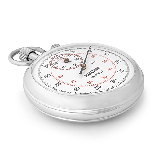 STOPWATCH INTERRUPTION TYPE. This stopwatch is mechanical wind up and has two buttons. The top button is the winding crown and allows the user to start and stop the stopwatch, the side button allows the user to return stopwatch hand to zero when stopwatch is in a stopped position. This stopwatch has a 60 min. register with 1/5 second divisions. Rugged 16 jewel lever movement. Antimagnetic and shock resistant with nickel chrome plated case. This stop watch is great for industrial timing as the dial allows the user to record in 1/5 second intervals or 1/100 minute intervals. 0 to 60 minutes (60 min. register) 1/5 second & 1/100th minute divisions Time-out 2 button function with start-stop button on the crown and zero reset on the side Rugged 16 jewel lever movement Antimagnetic and shock resistant Case is nickel platedFeature