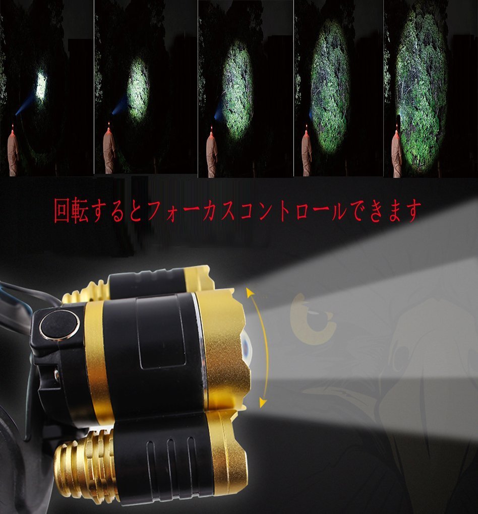 Three CREE XM - L T6 LED chips are used, and high brightness of 3 lights of 5000 lumens is provided.