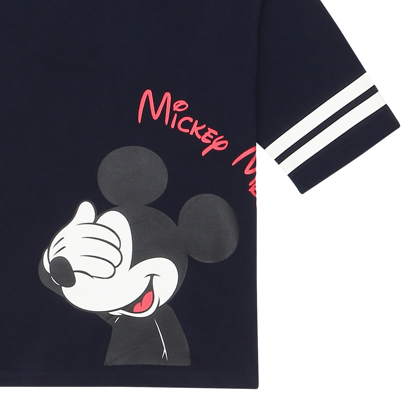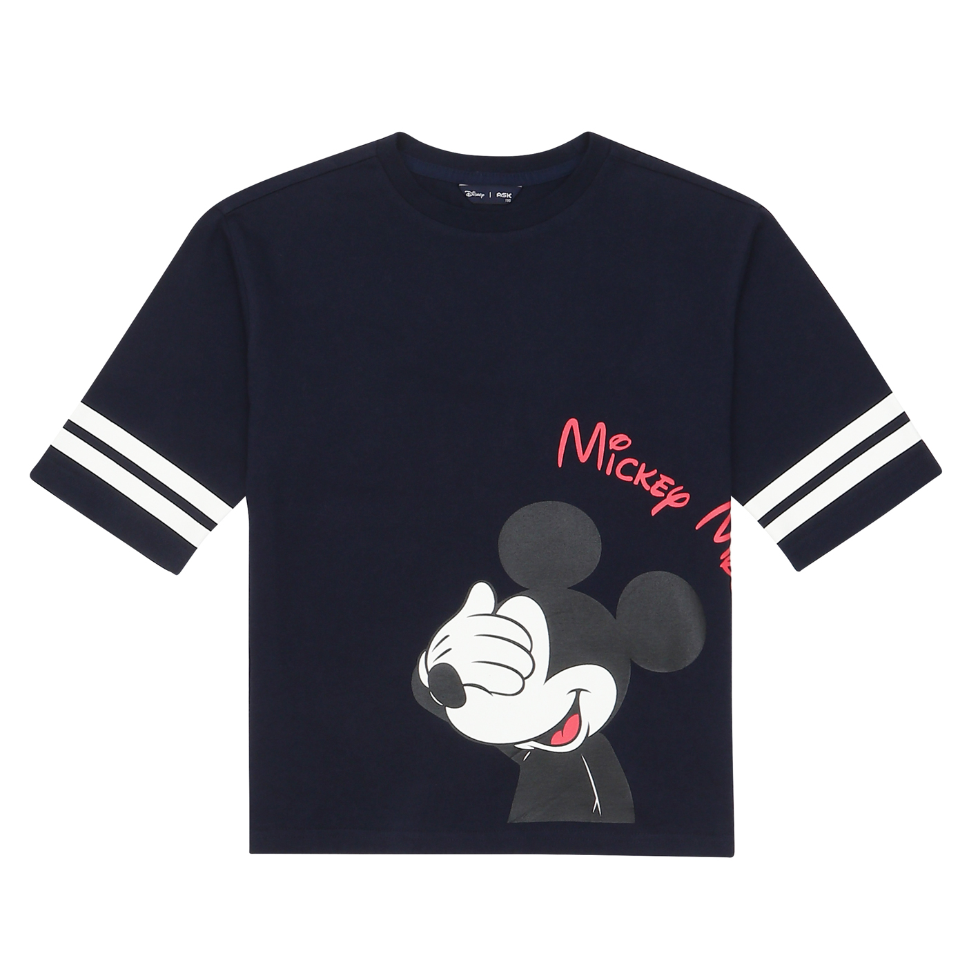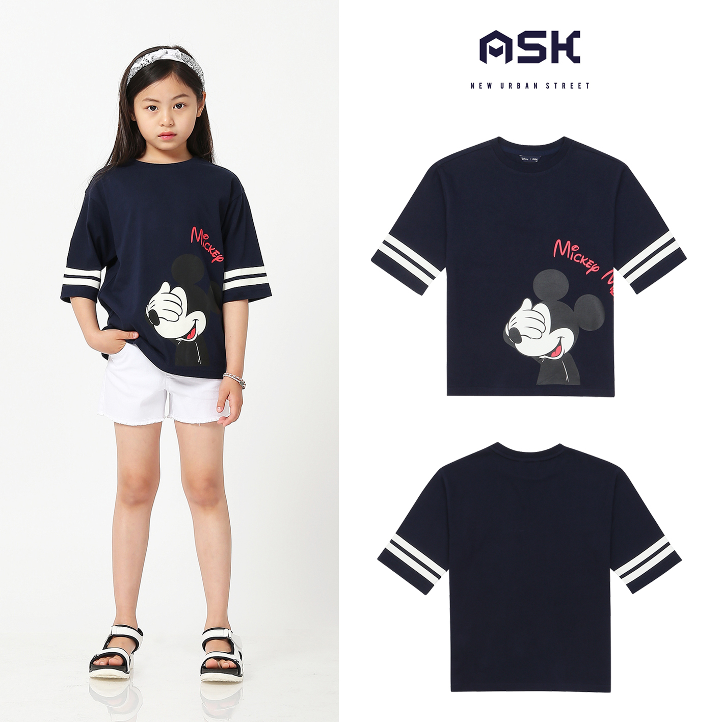 6부 소매 기장의 박시핏 티셔츠. 디즈니 미키 아트웍으로 포인트를 주어 토들러부터 주니어까지 판매하기 용이한 아이템.