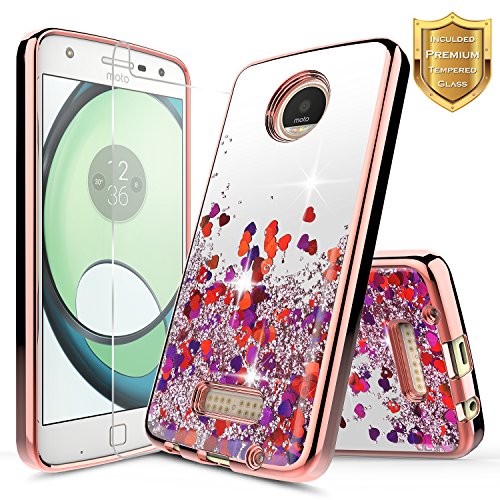 -. Title : Moto Z Force Droid Case with [Tempered Glass Screen Protector], NageBee Quicksand Liquid Floating Glitter Flowing Sparkle Bling Luxury Clear Case for Motorola Moto Z Force Droid (2016)