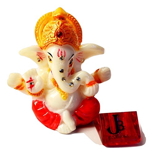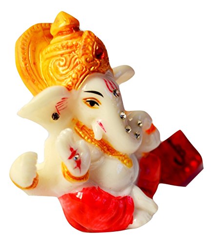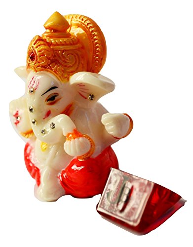 2.5" Mini Lord Ganesh Poly Marble Idol. Hindu God of Success (Red) - FREE Agarbati (Incense stick) stand