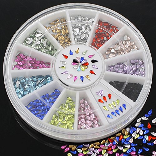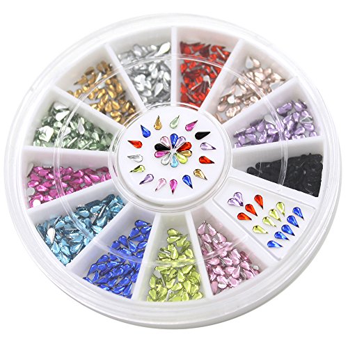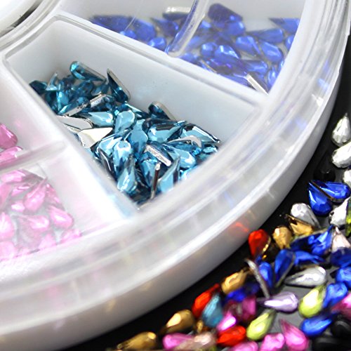 Features: 3mm Nail Decoration Stickers, Waterdrop Rhinestone, 12 Colors DIY Nail Tips Wheel
