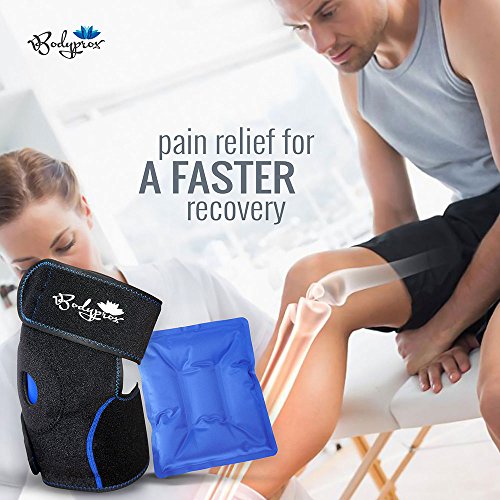 Studio : Bodyprox Publisher : Bodyprox Binding : Health and Beauty Product Description Bodyprox Knee Brace with Gel Pack is devised to provide relief and ease of pain due to muscle pains, sports injuries, body aches, and more. It also comes with a removable gel ice pack for a customized relief. Brace your knee with a gel ice pack or just simply brace it, it's totally up to you. It is provisioned with a circular frontal vent for proper and uninterrupted movement and decreased pressure the joints/patella which prevents pain from anterior cruciate ligament (ACL), tendonitis, meniscus tear, arthritis, runner's knee, swelling, surgery, muscle strain from strenuous activities such as hiking, marathon, exercise, running, and playing outdoor sports. The whole wrap is enhanced with a high-quality Velcro for better grip and stability. The strap allows wrap to concentrate and focus on the area requiring relief. Benefits of Hot and Cold Therapy. HOT THERAPY: ? Encourage blood flow and circulation. ? Promote quicker healing and pain relief for a faster recovery. ? Use a heated gel pack prior to any exercise help the body prepare for activity. ? Or use it post-event to minimize aching, discomfort, and soreness. Heat therapy can be used for a variety of treatment: Muscle Pain Spasms, Mild Arthritis, Menstrual Cramps, Sprains, Strains, and Stiffness etc. COLD THERAPY: ? Effective anti-inflammatory. ? Reduce swelling after an injury or trauma. ? Use a frozen gel pack to aid recovery and help combat pain. ? Cold therapy has a lot of uses: Sports Injuries, Minor Burns, Joint Pain etc.