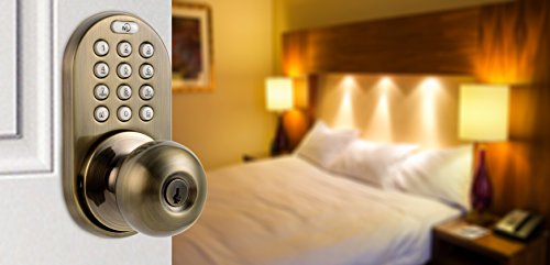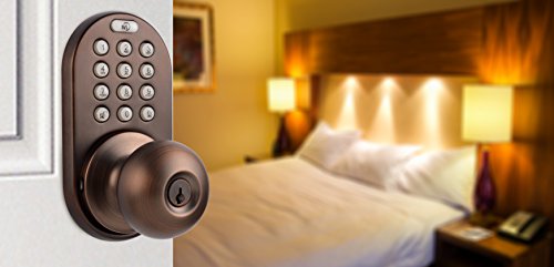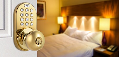-. Feature : Keyless door lock with electronic touchpad keypad entry / Direct replacement for standard door knobs / Add up to 6 user passcodes / Adjustable latch: 2-3/8-Inch (60mm) or 2-3/4-Inch (70mm) / 25 year Mechanical Warranty - 1 year Electrical Warranty - Lifetime Finish Warranty